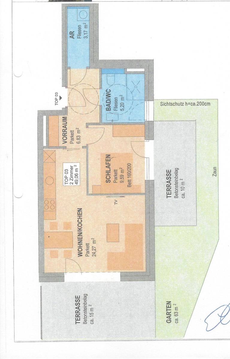 Die Wohnung hat einen idealen Grundriss mit sehr viel Platz im Wohn/Esszimmer (von da aus geht es direkt auf die große Terrasse und in den Garten). Außerdem gibt es in der Wohnung ein Schlafzimmer, ein Bad mit WC, einen großzügigen Abstellraum mit Waschmaschinenanschluss und eine tiptop ausgestattete Küche. Vom Schlafzimmer aus geht es auf die kleine Terrasse und in den Garten. Vom Esszimmer aus geht es in den großen Gartenteil mit großer Terrasse. Die Böden sind mit Fliesen im Bad und edlem Parkett in den anderen Räumen ausgestattet.